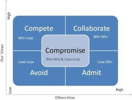 在回顾文献的基础上,蔡教授提出自己对跨文化冲突及其管理的理解。她认为,我们的观点与他者的观点是相互妥协还是产生冲突需要考虑四个因素:竞争、合作、回避与承让,这四个因素共同构成了一个冲突——妥协结构图(如下图)。竞争可能会让我方的观点压过他者观点,承让则是他者观点占了上风,合作能达到双赢,回避由于仅仅是表面上的妥协,深层次的冲突仍然极有可能爆发,所以最容易导致双输。而和谐既有可能是结构秩序上的妥协,也有可能是内在心理上的保留,在这一基础上,蔡教授得出她的结论:只有在跨文化工作中通过协商才有可能超越冲突实现和谐,这种协商主要依赖对异文化的提前预测和实际工作中的理论和实践建构来达成。
