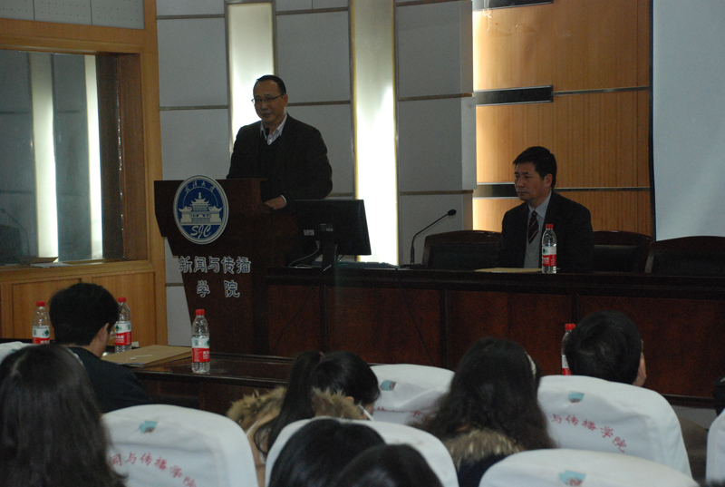 2014年3月24日下午,国家新闻出版广电总局发展研究中心主任庞井君研究员应邀在公司学术报告厅作了题为“现代视听传媒建设思考”的学术报告。太阳成集团媒体发展研究中心副主任吕尚彬教授主持了报告会。