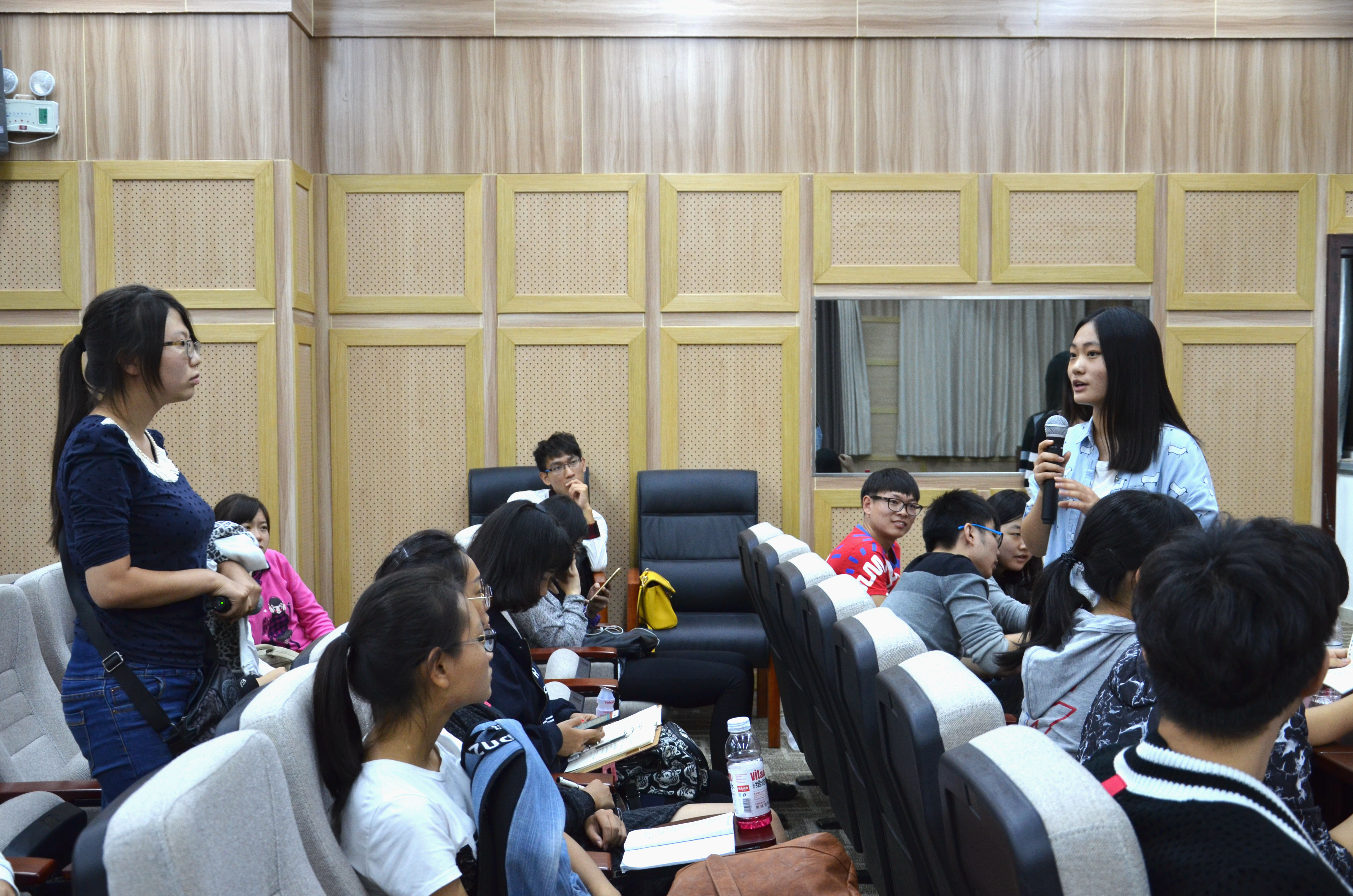 在交流互动环节中,2015级新生对专业就业方向、考研前景、时间规划等方面提出疑问,而杨伟彬、赵聪等分别从自己的专业角度出发细致耐心地解答。其中,曾文燕在回答“怎样选择第二学位”这一问题时强调坚持的重要性,“心足够沉淀”。谈及新闻专业深造的必要性时,“这个行业需要经验,需要想法。”张佳宁如是说。