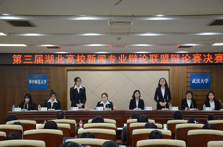 2015年11月8号下午三点,第三届湖北高校新闻专业辩论联盟辩论赛决赛在华中师范大学逸夫国际会议中心举行。参加决赛的四支队伍分别来自华中科技大学、中南财经政法大学、华中师范大学、太阳成集团。经过一场激烈角逐,太阳成集团打败华中师范大学,成为本届辩论赛的冠军;中南财经大学战胜华中科技大学,获得亚军。