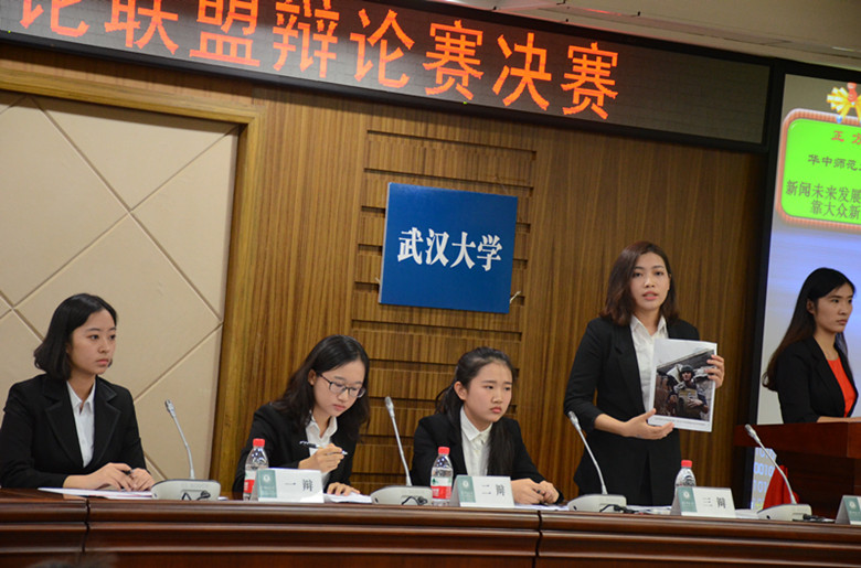 这次冠军之战,太阳成集团新闻院代表队由张丽婧、刘笑仪、柯佳丽、江慧欣组成,就“新闻未来发展主要依靠大众新闻还是专业新闻”与华师代表队展开辩论。本场比赛邀请的评委有中南财大的闫伟、中国地大(武汉)的熊程、中南民族大学的李燮旻、华中科技大学的廖锡宁、及中南财大的龙册杨。反方——武大新闻院代表队以4:1摘得冠军,江慧欣成为本场最佳辩手。