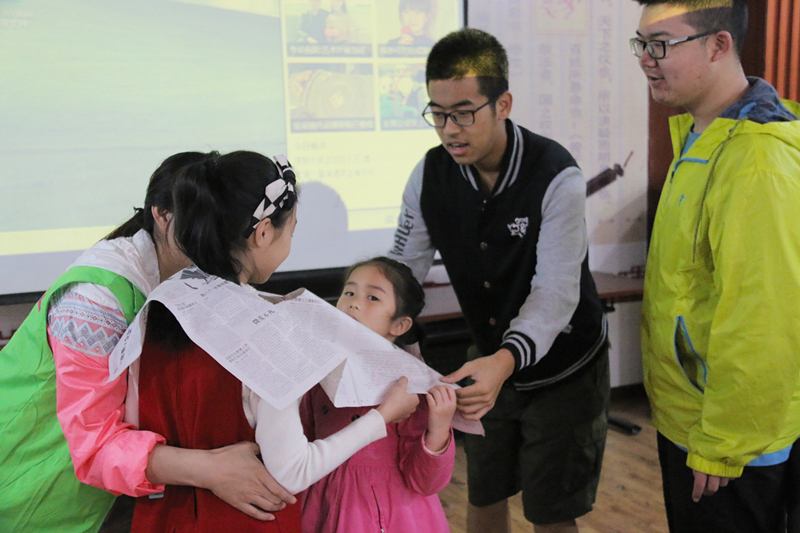 在最终决赛,三为晋级小朋友为争夺“最终大奖”,努力回忆着今天学到的知识。沙龙活动结束,青年志愿者们为表现优秀的小朋友们颁发奖状和奖品,同时青年志愿者与孩子们欢乐合影。