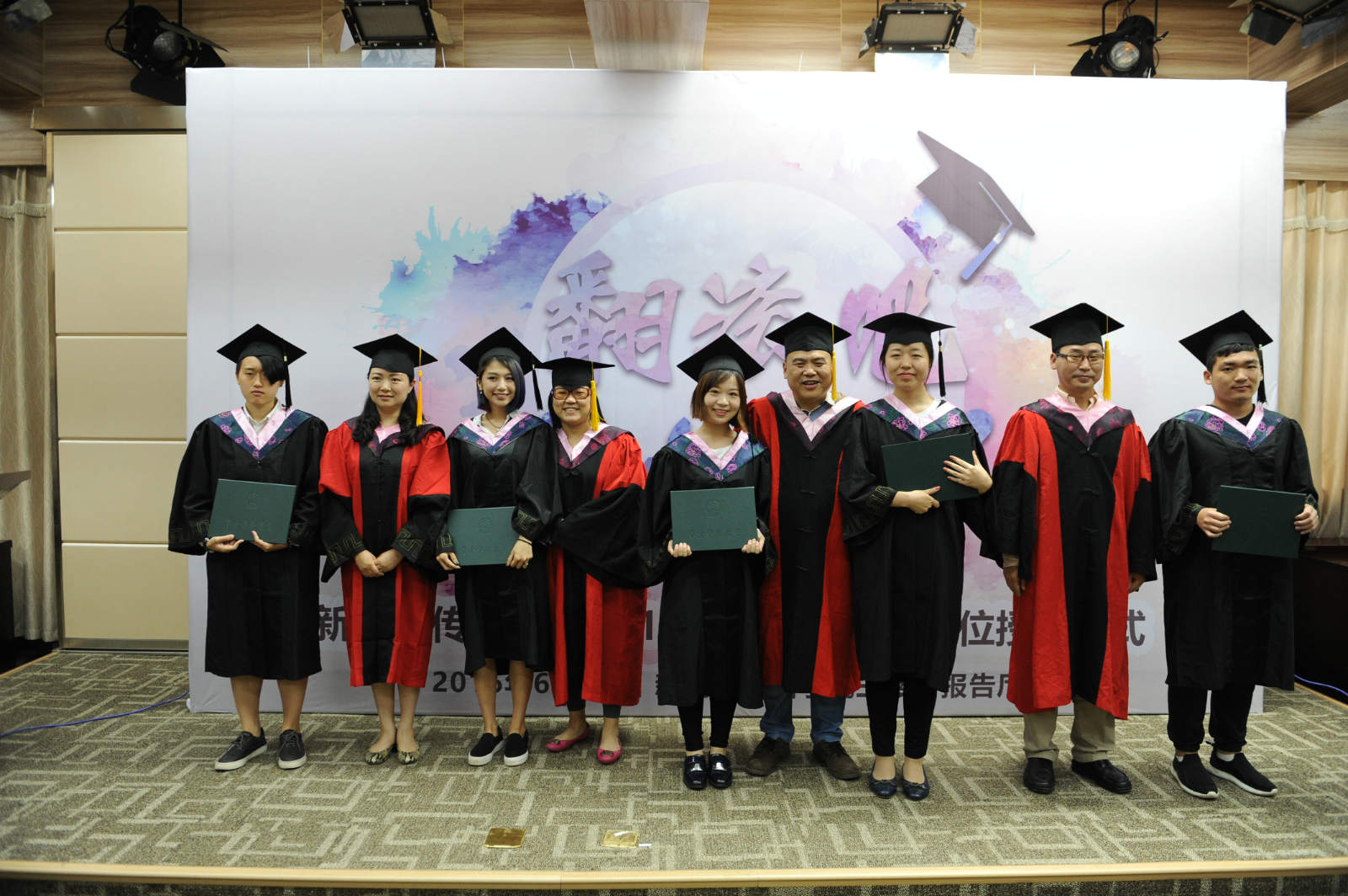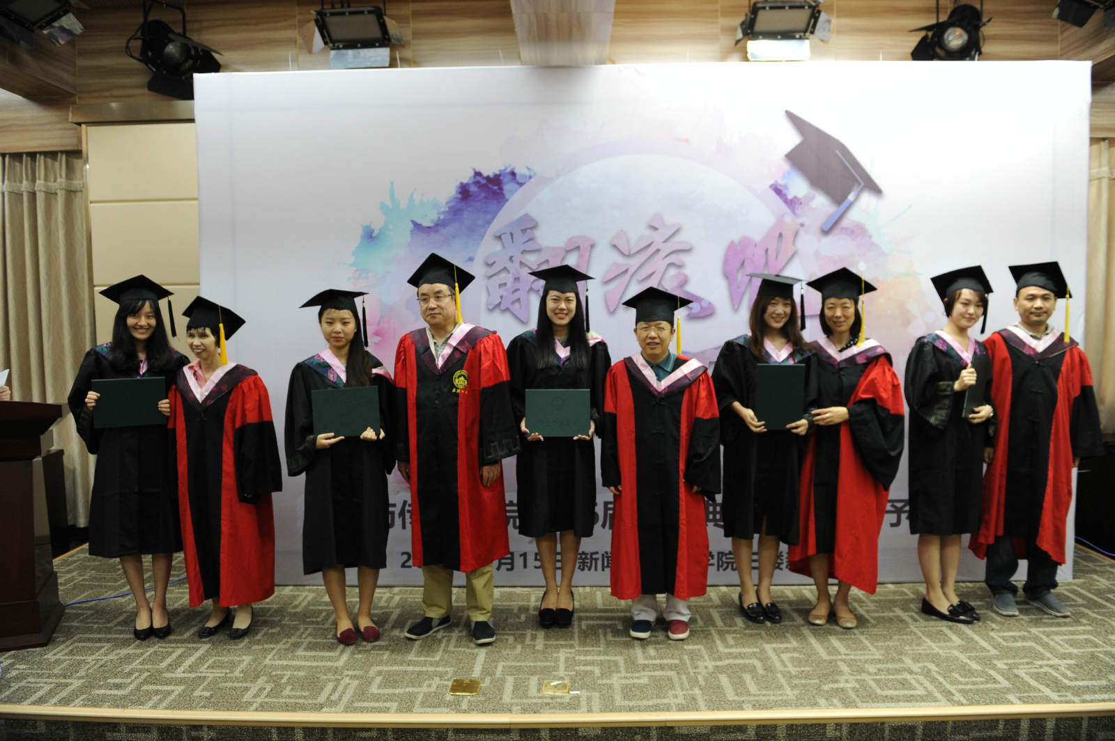 紧接着,活动进入到“见证奇迹的时刻”。副经理强月新宣读授予学识学位决定,各系老师给自己的员工颁发证书。学子们纷纷与老师拥抱、合照,一抹抹温情的瞬间在镜头下定格成了永恒。