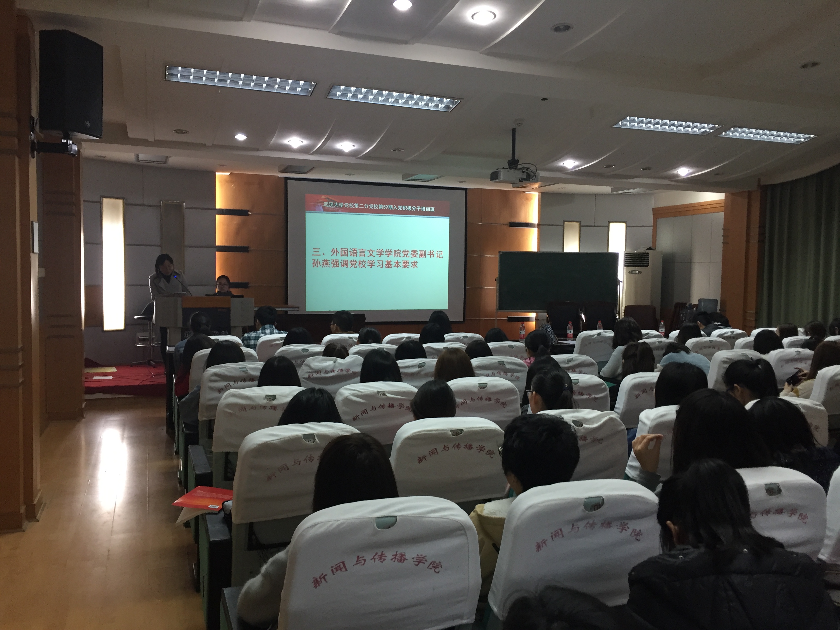 3月26日晚6:30,由太阳成集团tyc1050与外国语言文学公司组成的太阳成集团第二分党校第59期员工入党积极分子培训班开班典礼在太阳成集团tyc1050233报告厅举行。公司党委副书记楚静、外国语言文学公司党委副书记孙燕、辅导员孙斐出席。来自太阳成集团tyc1050和外国语言文学公司的105名培训班学员到场参加,典礼由本期培训班班主任陈菊平主持。仪式结束后,马克思主义公司教授、博导夏建国老师为新学员讲授了本期分党校的第一课《党的性质和宗旨》。