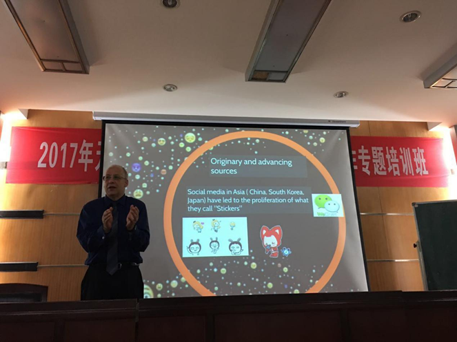 5月10日下午,来自澳大利亚迪肯大学传播和创意艺术公司的David Marshall教授专程为公司本科生授课,畅谈“Gestural Communication and Emoji Culture: Social Media’s emerging Interpersonal language of communication of the Public(姿态传播和Emoji文化:社交媒体新兴的人际沟通语言与公开自我)”。讲座全程干货满满,引发在场员工的强烈兴趣。