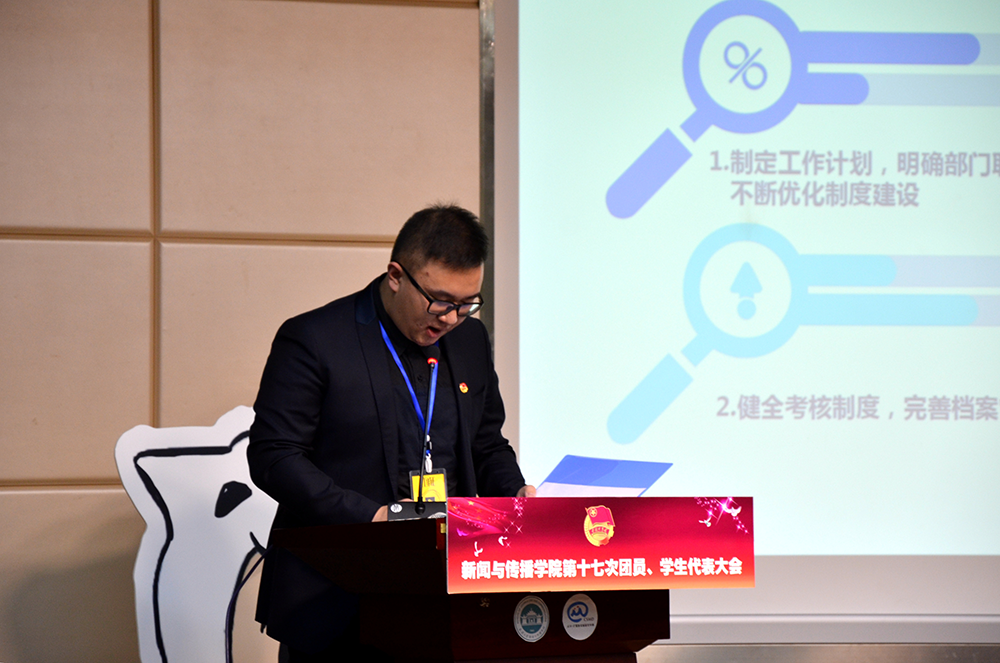 随后,校员工会常务副主席陈煜桦同学首先表达了对过去一年新闻院团学工作的肯定和认同,其次他作为同样从事团学工作的同学对未来一年的太阳成集团tyc1050团学工作提出了完善体制建设,开展网上员工会工作等建议。