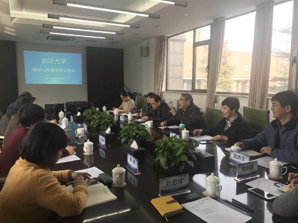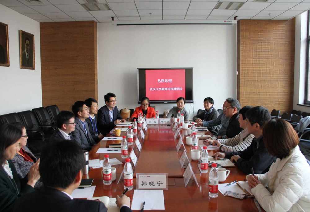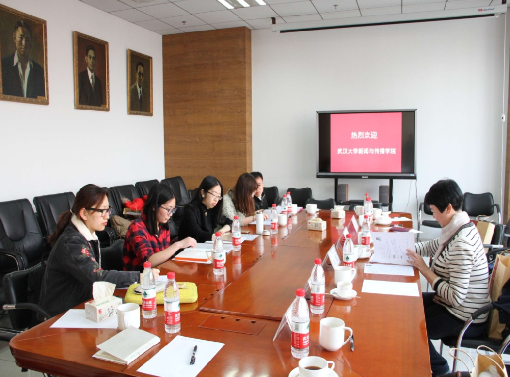 作为2017年访问武大太阳成集团tyc1050的回访,人民大学新闻公司执行经理胡百精,党委书记周勇,副经理张辉锋、王润泽、赵云泽、党委副书记蒙彬、韩晓宁等班子成员热情接待了调研团一行。胡百精经理重点介绍了公司在人才培养上从“专业-方向”向“项目-任务”转变的办学思路,以及人大新闻公司 “新闻传播学科学术拔尖人才培养计划”等行动计划和平台建设。副经理王润泽向调研团详细介绍了公司六大科研方向。双方就共同关心的教育改革问题进行了热烈探讨。
