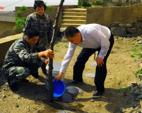 光明日报社郑晋鸣(右)与王继才夫妇在开山岛上植树