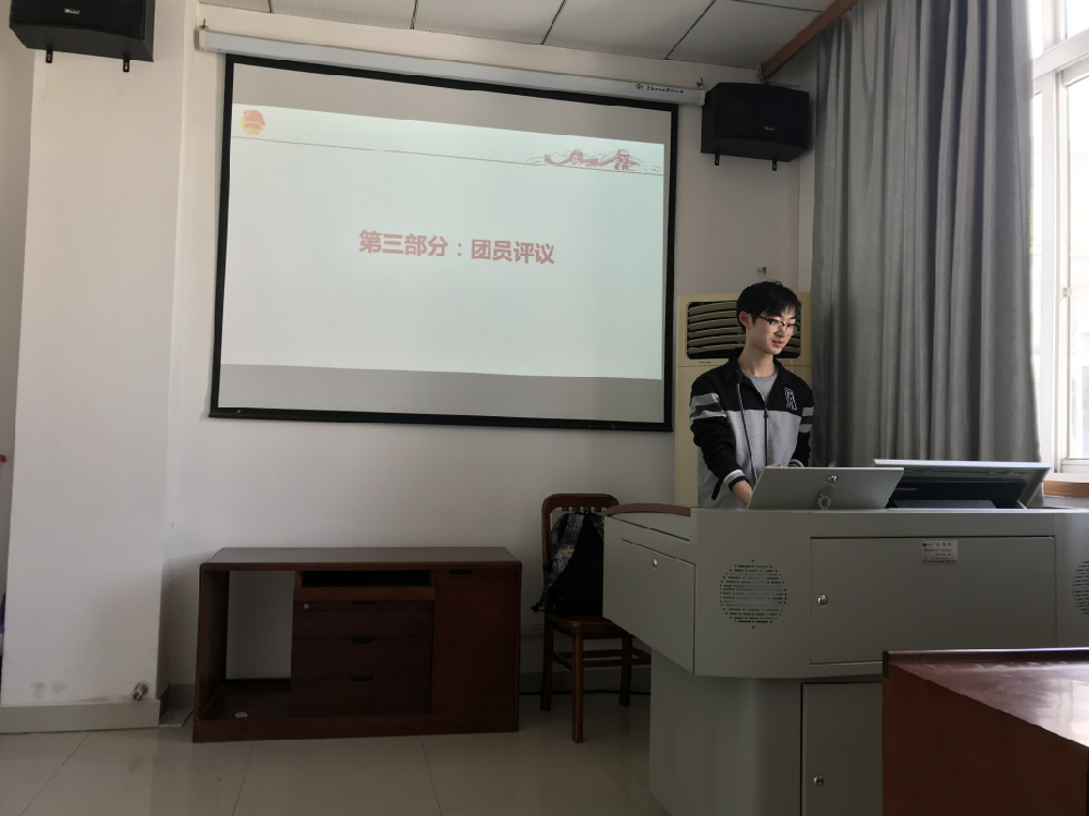 2017级广告设计专业团支书郭嘉铖带领团员进行评议