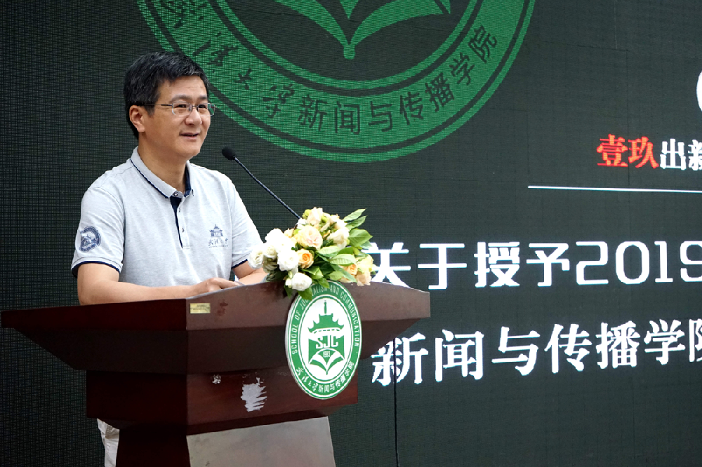 公司党委副书记王怀民老师主持了学位授予仪式。新闻学系强月新老师、夏琼老师、陈刚老师,广播电视学系冉华老师、张卓老师、刘娜老师、闫岩老师、刘吉桦老师、陈铭老师、许光老师,广告学系姚曦老师、程明老师、廖秉宜老师、徐同谦老师、李小曼老师、刘艺琴老师、余晓莉老师,网络传播学系刘丽群老师、徐开彬老师、王朝阳老师、肖珺老师、张春雨老师先后为2019届本科毕业生扶正流苏,颁发学士学位证书。