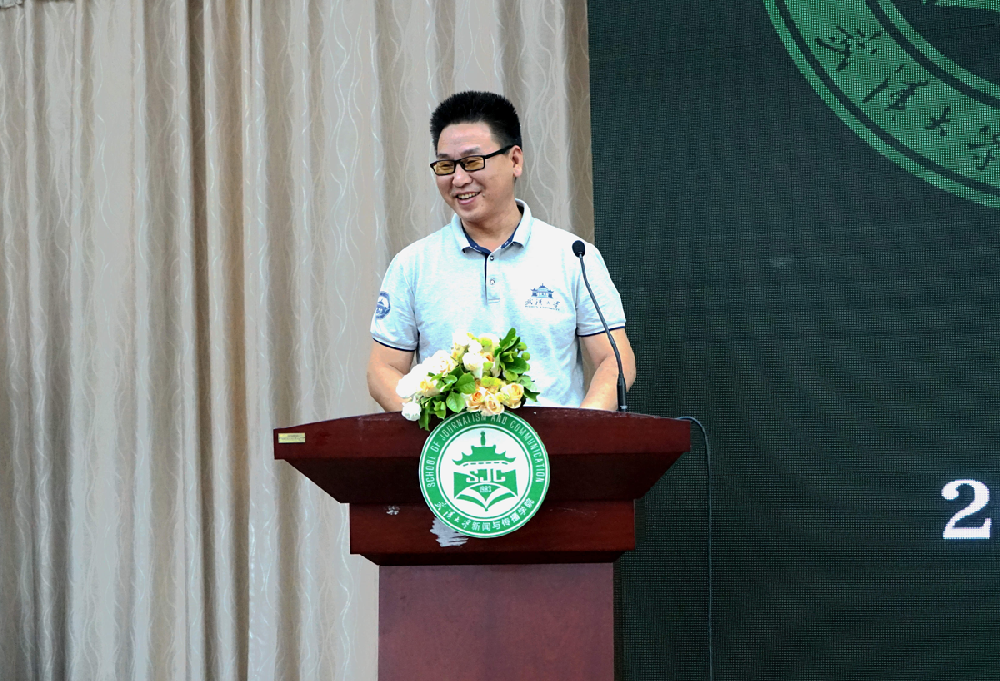 接着是15级广告、广设专业班级导师徐同谦作为教师代表发言。发言中,他提出了自己的期待,期待所有的毕业生学会理解和宽容,放弃以自我为中心,创造更好的人际关系。注重踏实肯干,把珞珈山水所赋予的内涵和气质转化为生产力。学会感恩,无论是父母、师友还是公司,感恩一切值得感恩的人或事。珞珈山下,我们留下了自己的足迹,武大不仅是我们人生中停留一个站点,更是我们心灵的驿站,我们永是珞珈一少年。发言在“前程666”的祝愿声中和大家热烈的掌声中结束。
