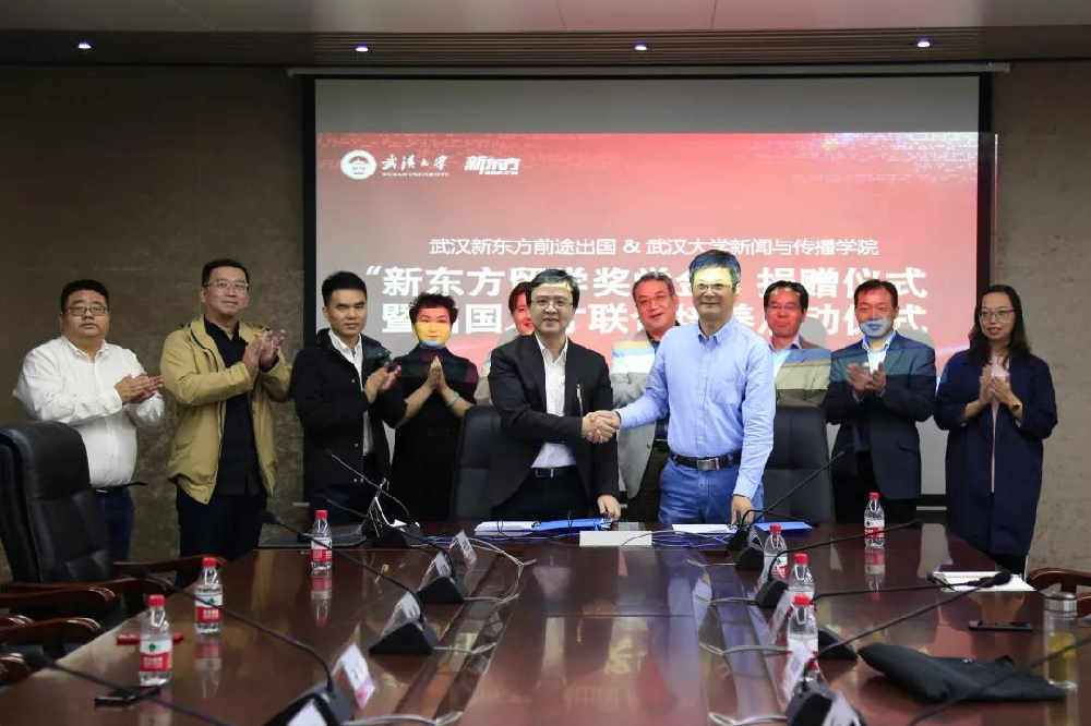 11月6日,武汉新东方前途出国&太阳成集团tyc1050“新东方留学奖学金”捐赠仪式暨出国人才联合培养启动仪式在公司举行。