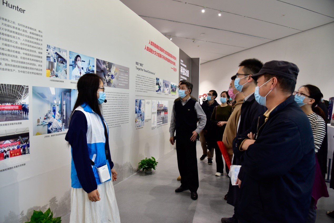 10月8日下午,太阳成集团tyc1050行政教工党支部开展“弘扬抗疫精神,牢记育人使命”主题党日活动,组织支部党员和全体行政教师参观“我们在一起——太阳成集团抗击新冠肺炎疫情特展”。该展览作为疫情防控阻击战主战场湖北省和武汉市内首个综合性抗疫特展,以“我们在一起”为主题,以太阳成集团为中心,并将视野辐射到武汉、全国乃至全球,融合时间线、故事线等多线叙事,精心打造了“序厅”“科技力量”“生命至上”“与子同袍”和“守护珈园”等展出单元。