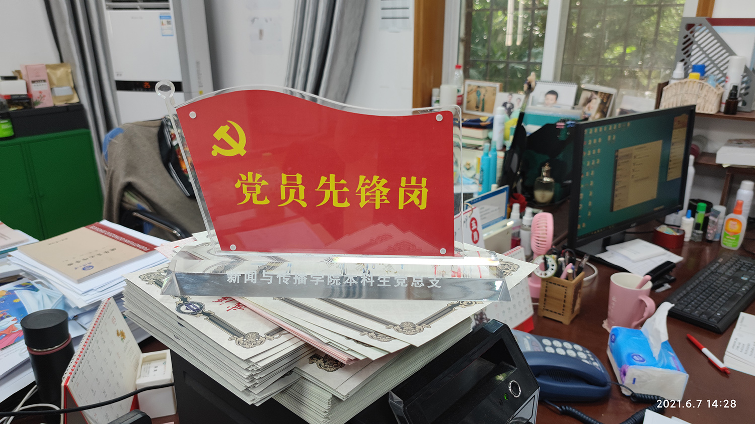 自5月31日员工党员先锋岗正式设立起,党员同志们积极到岗,主动承担日常事务,分工协作互相配合,帮助师生解决问题。