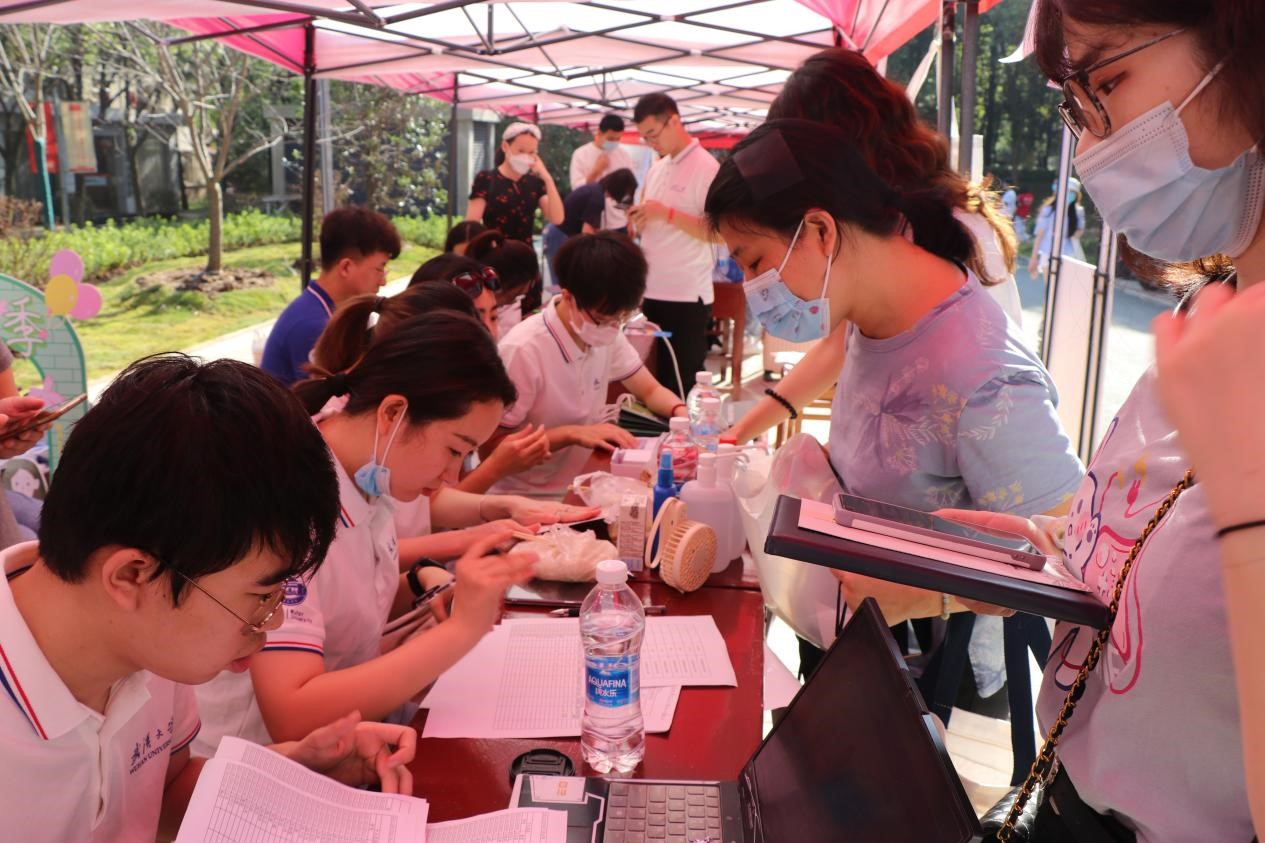 除此之外,工作人员还热情地为新生解决各种问题,帮助他们顺利完成报到流程——“记得尽快缴纳学费”“我带你去信息服务中心”“不要忘记做核酸检测”,在温馨的提醒帮助中,相信新同学也感受到了来自学长学姐的热情。