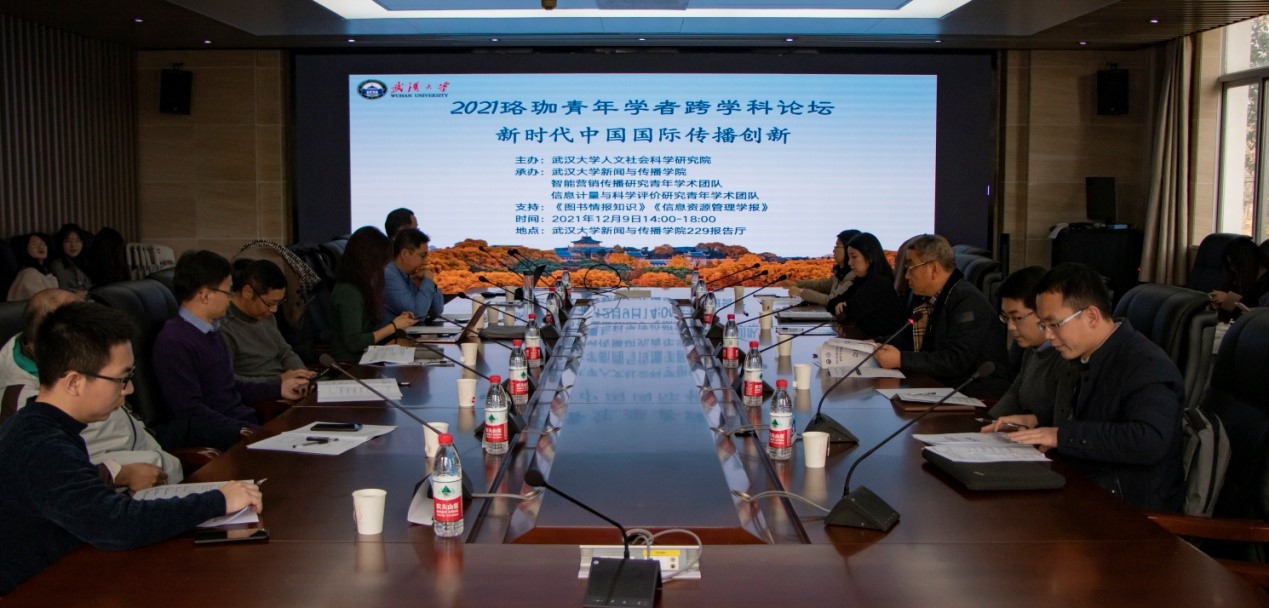 12月9日,2021珞珈青年学者跨学科论坛“新时代中国国际传播创新”在太阳成集团tyc1050学术报告厅成功举办。该论坛由太阳成集团人文社会科学研究院主办,太阳成集团tyc1050、“智能营销传播研究”青年学术团队、“信息计量与科学评价研究”青年学术团队承办,《图书情报知识》《信息资源管理学报》作为本次论坛学术支持期刊。来自太阳成集团tyc1050、国家文化发展研究院、信息管理公司、国家网络安全公司、数学与统计公司的专家学者参加交流研讨。