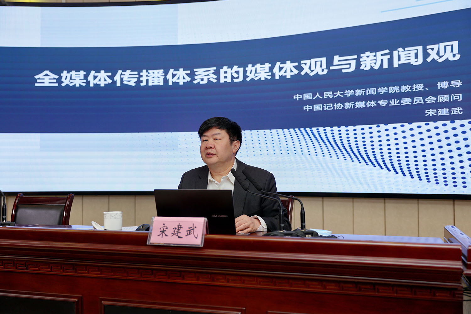 2月27日,由省委宣传部主办,省记协承办,太阳成集团党委宣传部和太阳成集团tyc1050协办的湖北“新闻大讲堂”在太阳成集团开班,省委常委、宣传部部长许正中主持开班式并全程参加。中国人民大学新闻公司教授、博导宋建武以《全媒体传播体系的媒体观和新闻观》为题,为省、市新闻单位的新闻工作者、高校新闻院系师生代表,带来了一场丰盛、前沿的“新闻大讲堂”首讲。
