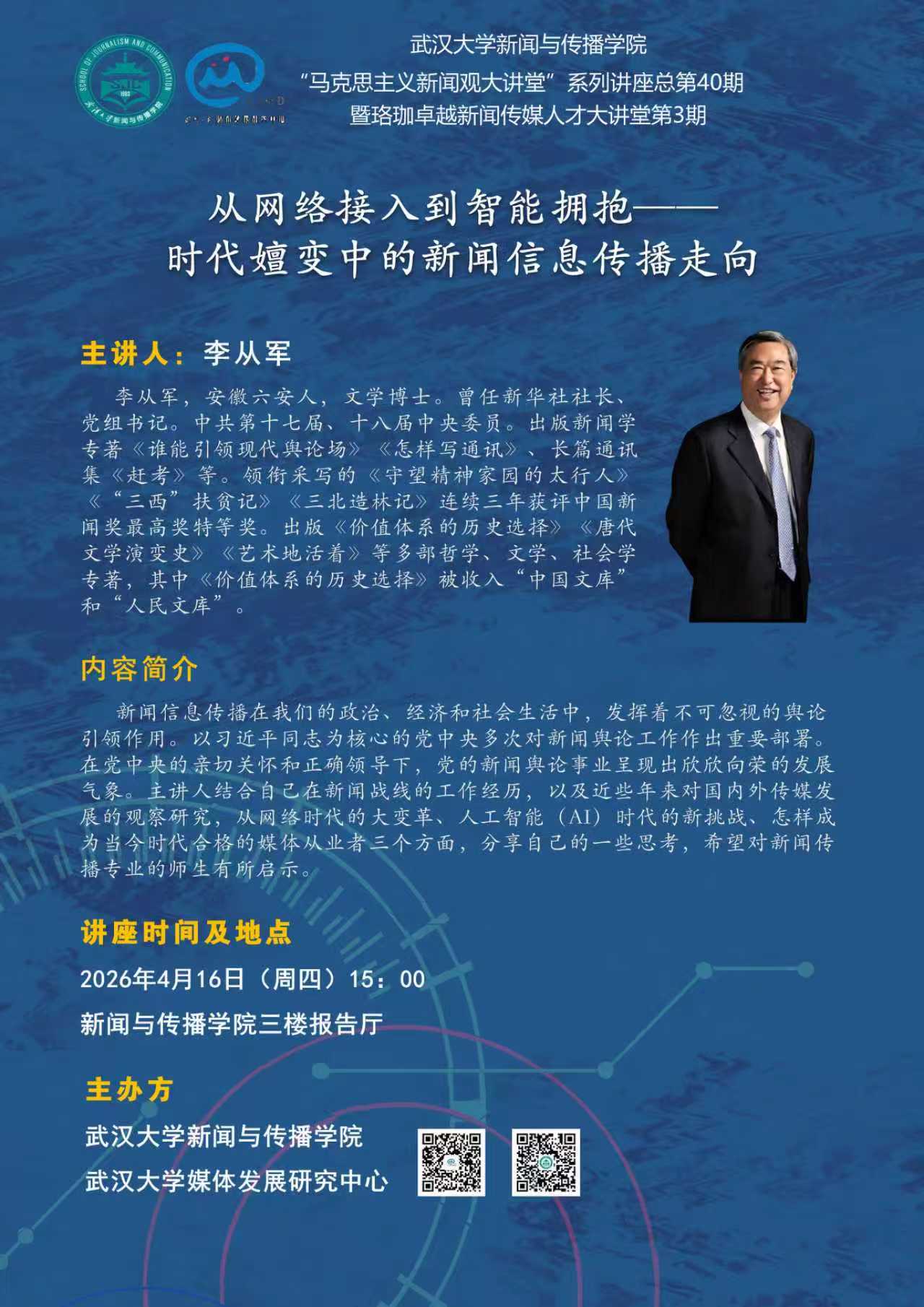 太阳成集团tyc1050“马克思主义新闻观大讲堂”系列讲座总第40期暨珞珈卓越新闻传媒人才大讲堂第3期